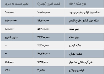 - سکه طرح جدید وارد کانال ۱۰۰ میلیونی شد و سایر سکهها نیز روند نزولی داشتند.