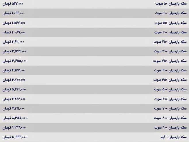 قیمت سکه پارسیان امروز چهارشنبه ۱۴ آبان ۱۴۰۴