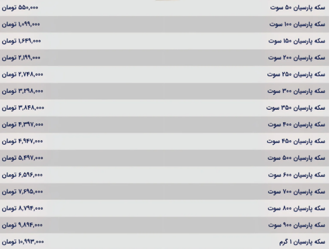 قیمت سکه پارسیان امروز چهارشنبه ۲۳ مهر ۱۴۰۴